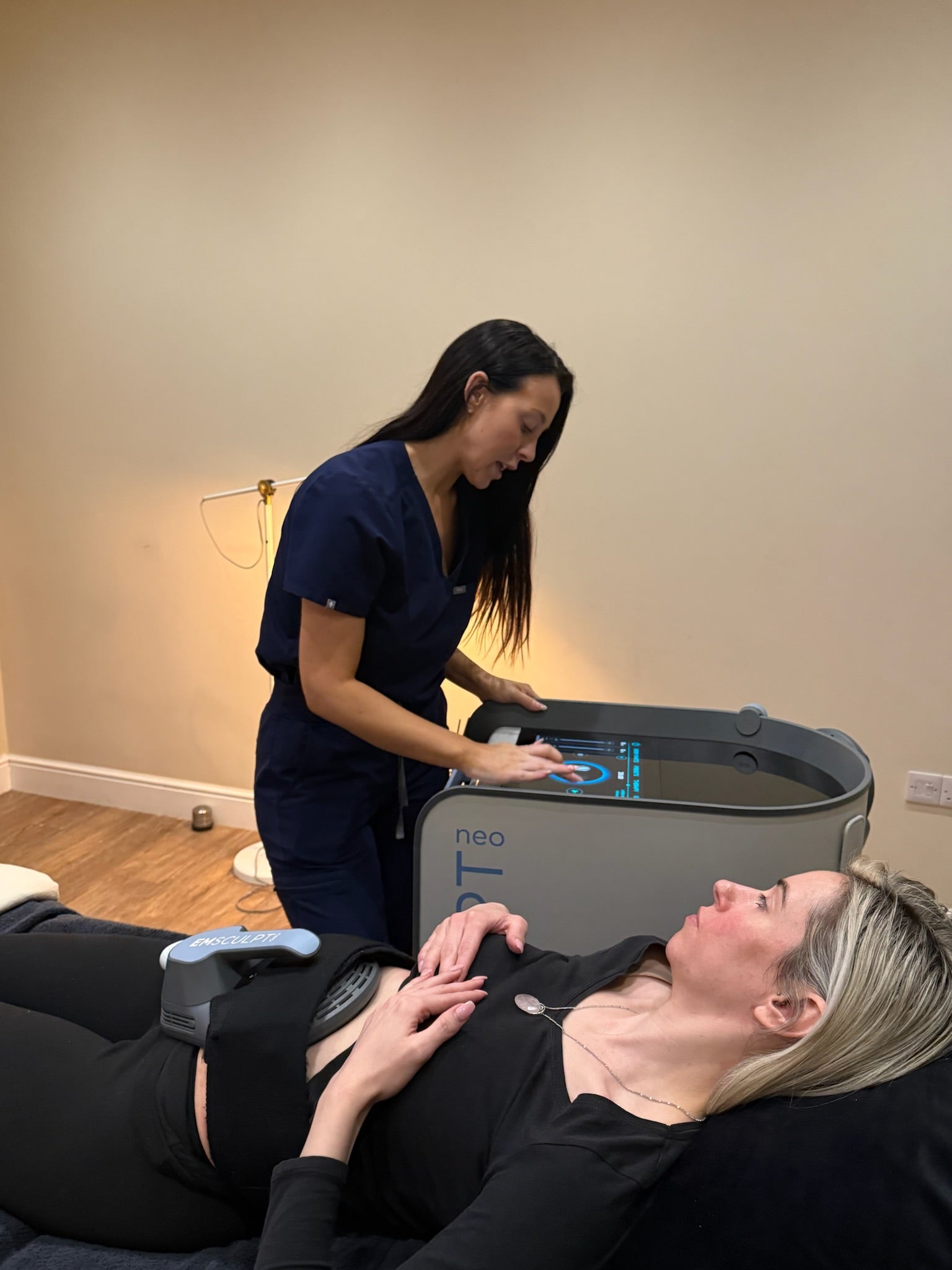 This bespoke programme combines Emsella pelvic floor strengthening with targeted core and abdominal treatments to improve: