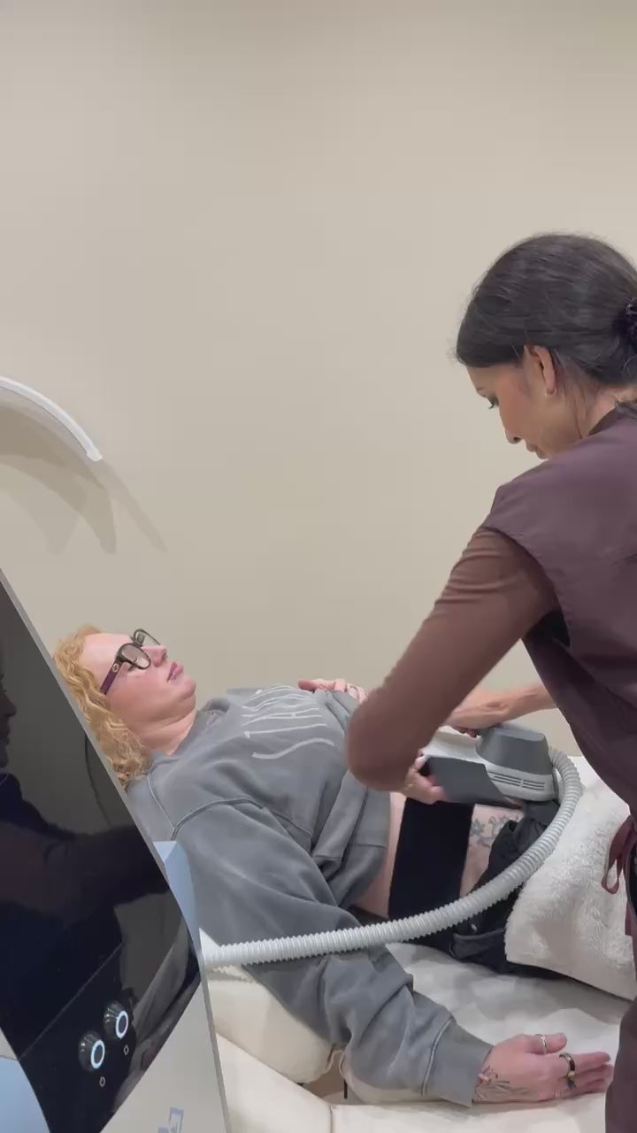 Emsella is a non-invasive treatment designed to strengthen and restore the pelvic floor using high-intensity electromagnetic technology. While fully clothed, you sit comfortably as the device delivers thousands of deep pelvic floor contractions in a single session — the equivalent of doing hours of pelvic floor exercises, without the effort.